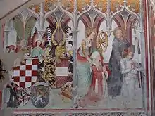 Within the abbey precinct there is a Romanesque basilica dating from the end of the 12th century. After a fire in 1367 a Gothic vaulted ceiling was added, painted with 44 frescoes by the Tyrolean masters Friedrich and Michael Pacher.