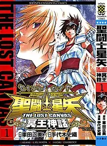 Saint Seiya: The Lost Canvas – Myth of Hades (Japanese: 聖闘士星矢 The Lost Canvas 冥王神話, Hepburn: Seinto Seiya Za Rosuto Kyanbasu Meiō Shinwa), also known as Knights of the Zodiac: The Lost Canvas or simply The Lost Canvas, is a Japanese manga series written and illustrated by Shiori Teshirogi. It is a spin-off of the manga series Saint Seiya by Masami Kurumada. The Lost Canvas began serialization in Akita Shoten's Weekly Shōnen Champion magazine on August 24, 2006, concluding after 223 chapters on April 6, 2011, with twenty-five tankōbon released. Originally envisioned as a manga whose purpose was to work simultaneously with Kurumada's Saint Seiya: Next Dimension as a multi-angle interpretation of the shared elements of its storyline, which stems from an event mentioned in Kurumada's Saint Seiya, the approach was quickly abandoned, as both works greatly diverged. Kurumada's Next Dimension stayed as the canonical telling of these events, and The Lost Canvas as a separate alternate retelling.
