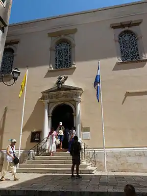 Saint Spyridon Church is a Greek Orthodox church located in Corfu, Greece. It was built in the 1580s. It houses the relics of Saint Spyridon and it is located in the old town of Corfu. It is a single-nave basilica and its bell tower is the highest in the Ionian Islands.[1] It is the most famous church in Corfu.[1][2][3][4][5]