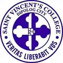 Saint Vincent’s College (Spanish: Colegio de San Vicente), officially known as Saint Vincent's College, Incorporated and abbreviated as SVCI, is the oldest and the most recognized higher educational institution in Zamboanga del Norte, Philippines; situated in the heart of Dipolog. SVC is a private, nonsectarian, non-stock and non-profit institution duly approved and authorized by the Department of Education and the Commission on Higher Education to offer course programs from kindergarten to postgraduate levels.
