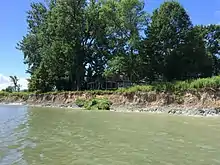 Île Sainte-Thérèse has been the subject of several park projects since the 1970s, but it faces many ecological challenges. Since the opening of the seaway in the 1950s, the south-eastern shores of the island have been affected by erosion caused by the mooring. In certain sectors located a few hundred meters from the seaway, it is between 1 and 2 meters from the shores that erode annually.[15]