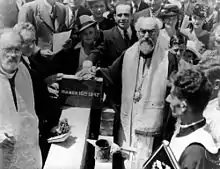 In approximately March 1945, a committee was elected at a general meeting with the power to acquire property and maintain the objects of the Greek Community of Townsville. This also included the commitment to build a church, priest's residence, and a community hall. Shortly afterwards a start was made to build a Greek Orthodox Church in Townsville when the granite foundation stone was laid in a ceremony performed by Archbishop Timothios, and attended by the Honorary Greek Consul Mr C. Freeleagus, on 16 March 1947.[1]