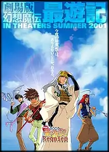 Saiyuki: Requiem or Gensomaden Saiyuki: Requiem - For the One Not Chosen (劇場版 幻想魔伝最遊記 Requiem 選ばれざる者への鎮魂歌, Gekijouban Gensou Maden Saiyuuki: Requiem - Erabarezaru Mono e no Chinkonka) is the first animated film adaptation of the anime and manga series Saiyuki produced by Pierrot.[2] The film directed by Hayato Date and written by Katsuyuki Sumisawa and composed by Motoi Sakuraba. the film was first released in Japanese theaters on August 18, 2001. The movie domestic released in DVD/VHS on August 8, 2002.[3][4]