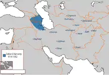 The Sajid dynasty (Persian: ساجیان, romanized: sajyan), was an Iranian Muslim dynasty that ruled from 889/890 until 929. The Sajids ruled Azerbaijan and parts of Armenia first from Maragha and Barda and then from Ardabil.[lower-alpha 1][1] The Sajids originated from the Central Asian province of Ushrusana and were of Iranian (Sogdian)[2][3][lower-alpha 2] descent. Muhammad ibn Abi'l-Saj Diwdad the son of Diwdad, the first Sajid ruler of Azerbaijan, was appointed as its ruler in 889 or 890. Muhammad's father Abu'l-Saj Devdad had fought under the Ushrusanan prince Afshin Khaydar during the latter's final campaign against the rebel Babak Khorramdin in Azerbaijan, and later served the caliphs. Toward the end of the 9th century, as the central authority of the Abbasid Caliphate weakened, Muhammad was able to form a virtually independent state. Much of the Sajids' energies were spent in attempting to take control of neighboring Armenia. The dynasty ended with the death of Abu'l-Musafir al-Fath in 929.