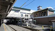 The station consists of two sets of island platforms numbered from south to north. From 2010, a new elevated station building provided a central set of ticket gates, replacing the previous exits on the north and south sides.