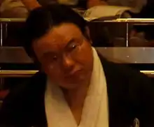 In September 1987 he defeated two yokozuna, Chiyonofuji and Futahaguro, and was awarded the Outstanding Performance prize.[4] He was promoted back to sekiwake and proceeded to hold the rank for a then record nine successive tournaments from November 1987 until March 1989, but he was never under consideration for promotion to ōzeki as he could not achieve regular double figure scores, his best result being 9–6.[6] In July 1989, troubled by a shoulder injury, he turned in a 2–13 record and was demoted to the maegashira ranks.[5] He managed to return to komusubi for one tournament in November 1990 but fell to jūryō in 1992 and announced his retirement that September at the age of 31 after 14 years in sumo.[2] (Terao competed for another ten years, until September 2002).[2]