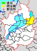 Map of Sakata District with Meiji period (1890) area in yellow.