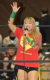 She is known for competing in various signature events of the promotion such as Catch the Wave, making her first appearance at the 2017 edition where she placed herself in the "Other Than" Block, scoring a total of five points after competing against Sareee, Rin Kadokura and Mochi Miyagi.[13] Her last appearance was at the 2021 edition, placing herself in the "Gatling Block" and scoring a total of three points after competing against Nagisa Nozaki, Yuu and Itsuki Aoki.[14]