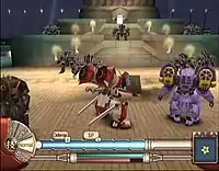 In battle mode, the player controls the New York Combat Revue as they battle demonic forces using machines dubbed Super Telekinetic Assault Robots (STARs).[3] Battles take place within 3D arenas and use the traditional Active & Realtime Machine System (ARMS). The player moves each unit within the limits of an Action point meter. Each unit has their own turn, with each turn allowing two actions. These actions include "Attack", "Defend", "Move", "Deathblow" (a critical strike that kills an enemy in one hit), Charge (store energy for a more powerful action during the next turn), and Heal (which restores health points to a chosen unit). Different units specialize in different skills, such as support actions, melee attacks, or distance attacks—along with their range of movement, each unit also has an independent range in which they can perform actions.[2] LIPS interactions in between combat segments raised each heroine's statistics, allowing a greater range of movement, and unlocking more powerful abilities and combination attacks.[5] Should a character fall in battle, the relationship will suffer, weakening their future combat ability.[4] The game ends when Shinjiro's STAR is destroyed or when certain conditions are not met. In addition to ground-based battles, STAR units can convert into a flying form, enabling mid-air battles using identical mechanics to the ground battles.[2][6]