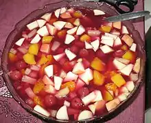 Fruit salads are made of fruit (in the culinary sense), which may be fresh or canned. Examples include fruit cocktail.[13]
