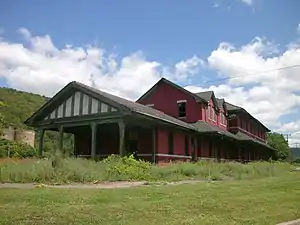 In 1902, the Erie Railroad came up with plans to replace the Windsplitter depot, constructed in 1872. In October 1902, the contract for the new depot was awarded to the Olean Supply Company.[12] The new station was designed to be 216 feet (66 m) with a second story on the top of the depot. This station in Salamanca would be symmetrical with the two dormers on the end of the upper floors. It was suggested by the Historic American Engineering Record that the depot was similar to the one at Hornell, New York.[13] The depot was opened on January 5, 1904, with practically the entire city of Salamanca appearing for its opening ceremony.[4] The new depot was constructed by the Olean Supply Company for the cost of $35,000 (1904 USD).[14] The station was supposed to cost $15,000 originally.[15] The new depot contained the offices for the Meadville Division of the Erie Railroad, dispatchers and the Corps of Engineers department aside of its basic utilities of passengers, baggage and mail delivery.[16] The former station depot was demolished in 1907.[17]