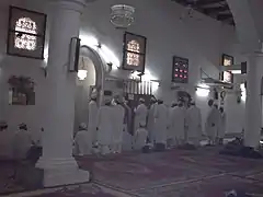 Salamieh is currently the largest population center of Isma'ili Muslims in the Arab world. The remains of Prince Aly Khan, the father of the current Nizari Isma'ili Imam Aga Khan IV, are buried in the city. The headquarters of the Isma'ili Shia Higher Council of Syria are in the city, as are dozens of Jama'at Khana. During the mid-twentieth century, Salamieh saw a growth of religious diversity with the building of the first Sunni mosque, and now the city is home to almost a dozen Sunni mosques and a Ja'fari Shia mosque in the city's Qadmusite Quarter which is home to most of the city's Ithna Ashari Shia which migrated to the city after ethnic and religious clashes in their hometown of Qadmus in the early twentieth century. Currently, a little more than half of the city's residents are Isma'ili.[4]