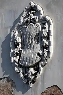 The coat of arms of the Salamon family - lozengy/fusilly silver and red[9] - is still visible on the facade of the Salamon Palace (15th century) in Cannaregio, Venice.