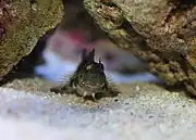 Salarias fasciatus, commonly known as the jewelled blenny or lawnmower blenny is a benthic, neritic, marine fish species endemic Australasia. Despite being known as the lawnmower blenny, due to its propensity to consume algae growth from rocks and glass, it is principally a detritivore, with plant material making up only 15% of its diet. .[2] The lawnmower blenny is generally regarded as compatible with most other marine fish species and as a group with other lawnmower blennies. The lawnmower blenny blends in with its surroundings, changing color to hide itself from predators. It stays mostly on the ocean or aquarium floor or on any rock or corals.