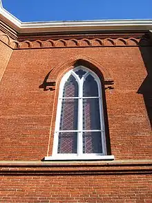 The Methodist Episcopal Church of Salem was established in 1841 when the Methodist Mission moved its headquarters to Salem.[5] Jason Lee was one of the 13 charter members of the church, and David Leslie was the first pastor.[5] Initially the church met in a room at the Oregon Institute.[5] After about 10 years, the congregation grew, and in 1853 they were able to build a small wooden frame building at the southeast corner of Church and State streets.[5] By 1870, the congregation had outgrown this building and they began construction of the current sanctuary building at the same location.[5] The brick Gothic Revival-style church was completed in 1878, despite a national depression and other difficulties.[5] Cass Chapman, a Chicago architect who designed a number of buildings at Cornell College, supplied the plans, which were reduced in scale by one-eighth in order to lower building costs.[4][6] Local architect Wilbur F. Boothby supervised the construction.[4]