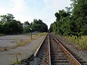 Although the Wildcat Branch was in use from 1836 to 1848 and again from 1874 on, there was no station on the branch. On June 14, 1959, the Boston and Maine Railroad introduced a series of service cutbacks, including the abandonment of the north half of the Woburn Loop.[1] Service on the Western Route (B&M mainline) was discontinued from Reading station to Wilmington Junction; all service to Haverhill station and beyond was rerouted via the Wilmington Branch (now known as the Wildcat Branch). North Wilmington station on the Western Route was replaced with Salem Street.[1][3] A single low-level platform was built on the east side of the line's single track, along with a small parking area.[4]