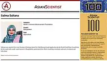![]() Dr. Salma Sultana was listed among the top 100 Asian scientists in the Asian Scientist magazine in April 2021 | |