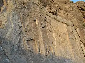 According to Encyclopædia Britannica the earliest historic recognition of Salmas could be found at the time of Ardashir I's reign (224–242 AD) via a petroglyph of him on horseback while receiving surrender of the Parthian personage.[10] In another contribution by Britannica, on an animated political map of Sassanid Empire at the time of Shapur I's reign (240–270 AD), Salmas is markedly acknowledged as one of the renown and apparently important cities of the empire with the same original name as now.[11] There is a speculation that the nickname of the city, Shapur, might be derived from the name of this king (of kings) of Persia.