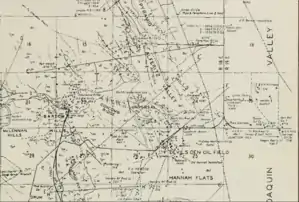 Salt Spring, originally, Aguaje de la Brea (tar springs), a spring in the Antelope Plain[2] on the southeast end of Pyramid Hills, 0.6 miles south of Emigrant Hill[3] and 1.5 miles north of Wagon Wheel Mountain[4] in the Pyramid Hills of Kern County, California.[1] Its location appears on a 1914 USGS Topographic map of Lost Hills.[5] Salt Spring is located just east of the Pyramid Hills and the Devils Den Oil Field,[6] 3 miles southwest of Devils Den,[7][8] close by the south side of Kecks Road, 0.23 miles east of the California Aqueduct, enclosed by a fence.