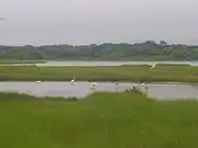 Widgeon grass (Ruppia maritima) - marsh minnow deepwater pool. Pools on the high salt marsh that are semi-permanently and permanently flooded. They are able to sustain populations of Sheephead minnow (Cyprinodon variegatus variegatus), Mummichogs, (Fundulus heteroclitus), and other species of small fish which may become trapped in the pools and benthic species of vegetation. Occasionally can be found at the upper edge of the low salt marsh.