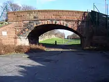 Since demolition, the site of Saltcoats North has been redeveloped into a housing estate.[5] Most of the trackbed between the station and Stevenston Moorpark station has been filled in and converted into a pathway signposted as 'Old Caley Line'. Several road bridges that crossed the line here are still in existence,[6] though are now partially buried in the ground. Aside from the road bridge that was directly adjacent to the station, there is no trace left of the station itself.