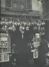 The salumeria originated in Italy and dates to the Middle Ages.[1][7] Historically, salumerias in Bologna, Italy did not produce their own meats.[1] They selected meats and other products such as pasta, olives and cheeses from local purveyors.[1] These purveyors worked in a guild system that was created by the signori in Bologna, the city's rulers, in a system that dates to the Middle Ages.[1] Purveyors for salumeria products included the salaroli, which controlled the salt industry, who salted the pork, which was then shipped to the lardaioli, a guild that sold the pork.[1] The lardaioli also produced soap and candles from the pork lard they would receive.[1] This guild system was eliminated by Napoléon Bonaparte around the time of the turn of the 19th century.[1]