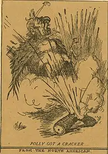 Charles Nelan, a cartoonist working for the anti-Quay North American newspaper out of Philadelphia, capitalized on the candidate's remarks by drawing him as a conceited parrot. Referencing the parrot's propensity for mimicry, the caricatured bird repeated the words of party elders: metaphorically, Nelan accused Pennypacker of being a rubber stamp for the desires of Quay and his cronies. Later cartoons similarly implied that the judge was tainted by his association with Quay, but Pennypacker won the governor's race anyway.[4][2] Despite his victory, Pennypacker harbored ill will against the cartoonists, with his inaugural address criticizing "sensational journals" as a "terror to the household, a detriment to the public service, and an impediment to the courts of justice."[6]