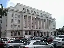 In the Roman Catholic Church, Brazil and the rest of the Portuguese Empire were initially administered as part of the Diocese of Funchal in Portugal but, in 1551, Salvador became the seat of the first Roman Catholic diocese erected in Brazil.[21] The first parish church[22] was the mud-and-thatch Church of Our Lady of Help (Igreja da Nossa Senhora da Ajuda) erected by the Jesuits (Society of Jesus),[n 4] which served as the first cathedral of the diocese until the Jesuits finished construction of the original basilica on the Terreiro de Jesus in 1553.[22][n 5] Its bishop was made independent of the Archdiocese of Lisbon at the request of King Pedro II in 1676;[25] he served as the primate of the Congo and Angola in central Africa until the elevation of the Diocese of Luanda on 13 January 1844 and its bishop still serves as the national primate and premier see (diocese) of Brazil.