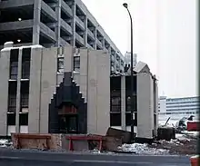 In 1988, the hospital, which was then owned by HealthEast Care System, announced plans for a new building on the site, however the plans fell through and the building was not demolished. However, in late 1996, HealthEast announced plans to demolish the structure because of its maintenance costs and a lack of suitable use. In November 1996, the company announced it would be willing to sell the building or its notable facade for $1 to anyone willing to assume the cost of dismantling and moving it. Because the company wished to retain ownership of the land for future development, the offer was only for the building itself and not the site. The St. Paul Heritage Preservation Commission opposed the demolition, but because it had no official local or national historic designation it had no legal authority to stop a demolition. At the time of the proposed demolition, HealthEast had plans to close the adjacent St. Joseph's Hospital and redevelop the area; the hospital still exists as of 2010.[4] In March 1997, the Minnesota Historical Society sent a letter to HealthEast offered assistance in aiding in finding new uses for the structure and noted that moving a historic building often severely compromises its historic integrity. In addition, they noted that, if listed on the NRHP, the building could qualify for federal preservation tax benefits.[5] HealthEast hired an architect in 1997 to look for reuse possibilities, but it was determined that such a restoration and adaptation would be too costly to be feasible for the hospital. By January 16, 1998, no one had taken up HealthEast's offer to buy and move the structure.[6] The building was demolished later that month.[7]