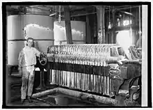 By 1924, the Mayfield Road Mob was moving to secure a monopoly on both the importation and manufacture of illegal liquor in northeast Ohio.[15][lower-alpha 1] This group consisted primarily of the Lonardo brothers, Todaro, John Angersola,[lower-alpha 2] Charles Colletti, Lawrence Lupo, and Charles Russo.[15] In 1925, with pre-Prohibition stockpiles of alcohol exhausted, corn whiskey—which had been manufactured on a small scale—became the illegal liquor of choice in northeast Ohio.[19][20][21][22] Corn sugar[lower-alpha 3] was the key to the manufacture of corn whiskey. It could not only be substituted for grain as the main ingredient in mash but also permitted faster production of the final liquor.[24] Control of the corn sugar industry as well as the distribution of illegal liquor was critical to anyone seeking to dominate the illegal liquor industry.[25]