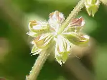 Inflorescences are 4 flowered verticillasters in loose racemes or panicles that are 15 to 30 cm (5.9 to 11.8 in), with a purple-blue corolla that is 2 cm (0.79 in).[1]