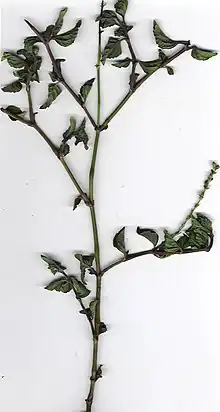 The herb typically growing in damp bushy areas between 50 to 1,300 m (160 to 4,270 ft) elevation. It bears 4 millimetres (0.16 in) long pale pink flowers.[1][2]