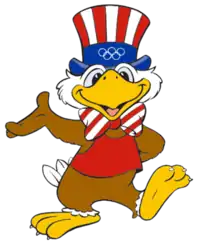Sam the Olympic Eagle was the mascot of the 1984 Summer Olympics which were held in Los Angeles. He is a bald eagle, the national bird of the host nation, the United States. Intended as a patriotic symbol, being named Sam also suggests a kinship with Uncle Sam, another American symbol. The mascot was designed by Bob Moore, an artist for Disney.
