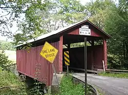 The Sam Eckman Covered Bridge No. 92 is a historic wooden covered bridge located at Greenwood Township and Pine Township in Columbia County, Pennsylvania. It is a 65.1-foot-long (19.8 m), Warren Truss bridge constructed in 1876. It crosses Little Fishing Creek. It is one of 28 historic covered bridges in Columbia and Montour Counties.[2]