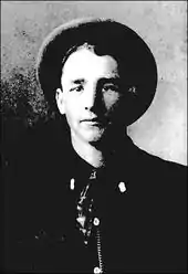 Under the influence of his older and more political savvy neighbor, O. T. Green, Sam joined the Socialist Party of America.[7] In May 1910, he and his friend Arch Cornett, a local teacher, founded the Mill Creek Local of the Socialist Party in Combs with ten members; at an all-time high, membership was close to 30, including Addie Faubus.[8] Sam Faubus was a firm opponent of the U.S. involvement in World War I and once was arrested with Arch Cornett for distributing anti-war literature and charged with the Sedition Act of 1918 violation. The end of the war helped him to escape imprisonment.[3] He also advocated introduction of the graduated income tax, old age benefits, supported racial equality (he despised and opposed segregation and racism, viewing it as plots to divide the working class), repeal of restricting voting poll tax, and women's suffrage, along with other socialists in Arkansas.[9][10] In the 1950s, he supported desegregation.