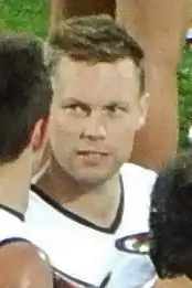 On 13 July 2015, Mitchell was found guilty by the AFL's match review panel of having kneed the right thigh of Fremantle Dockers player Nathan Fyfe during the second quarter of the previous day's game and was fined $1000 for the offence. The media then brought to light other kneeing incidents involving Mitchell, those being the kneeing of Adelaide Crows captain Taylor Walker in the round 12 game and the kneeing of Greater Western Sydney's Ryan Griffen in round 6 of the 2015 season.[47][48] Another kneeing video incident surfaced of Mitchell kneeing North Melbourne defender Scott Thompson. The video shows Mitchell walking up to an unsuspecting Thompson and kneeing him in the left thigh.[49] Media reports from 2008 show that an opposition club, Brisbane expressed concerns to the AFL about Sam Mitchell's kneeing of opponents.[50]
