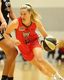 In May 2015, Whitcomb signed with the Perth Lynx for the 2015–16 WNBL season.[64] She earned eight Team of the Week recognitions,[65] was named Player of the Week for Round 3,[66] and helped the Lynx reach their first WNBL Grand Final since 1999.[67] In the grand final series, the Lynx were defeated 2–0 by the Townsville Fire despite Whitcomb's 20 points in game one and 15 points in game two.[68][69] For the season, Whitcomb earned WNBL All-Star Five honors[70] and finished third in league MVP voting.[71] She appeared in all 27 games for the Lynx in 2015–16, averaging 19.4 points, 5.7 rebounds, 2.9 assists and 2.8 steals per game. She was subsequently named Lynx Club MVP.[72]