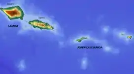 The Samoan Islands are in the central Pacific Ocean. They are volcanic in origin. The islands have a total area of 3,030 km². The largest islands in the group are Savai'i and Upolu. The islands are politically divided between Samoa, an independent country, and American Samoa, and unincorporated territory of the United States.[1]