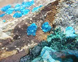 Sampleite has a general formula of NaCaCu5(PO4)4Cl•5(H2O).[4] It was first described in 1942 for an occurrence in Chuquicamata, Chile and was named after Mat Sample, a mine superintendent for the Chile Exploration Company.[3]