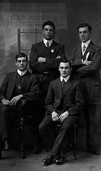 When Hosking was very young he dislocated his left elbow, leading his father James, out of an abundance of caution, to rule that his son should never play football.[1] To circumvent his father's ruling and ire, when Hosking played junior football with the Marist Brothers, and later the Semaphore Centrals, he did so under a false name.[1] The pseudonym that Hosking used during these early years was H. Sampson.[11] During his time at Semaphore Centrals his teammates often joked "who is this H. Sampson anyway?" and that "he is picked but never turns up!".[11] Hosking was part of the Semaphore Centrals team that lost the Adelaide and Suburban Football Association Grand Final to the Norwood Seconds in 1906.[12] Whilst at Semaphore Centrals Hosking purchased a short-brimmed hat, similar to that worn by an Adelaide comedian at the time known as Harry Shine, and was subsequently given the nickname "Shine" by his friends.[13][14]