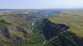 Samshvilde Canyon Natural Monument (Georgian: სამშვილდის კანიონი) is part of the Khrami gorge, and provided natural defense to the Samshvilde fortress in the area around the confluence of the Khrami and Chivchavi (Chivchava or Chivchivi) rivers near Samshvilde village and the ruins of historic Samshvilde located in Tetritsqaro Municipality, in the Kvemo Kartli region of southeastern Georgia,[1] 548-605 meters above sea level.[2] Samshvilde Canyon also includes part of the Chivchav (Chivchava) gorge in the same location, since historically it also was part of the natural defenses of the Samshvilde fortress.[1]