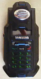 The Samsung SPH-N270 or Matrix phone is a bar style mobile phone released in 2003, made to resemble the phone used in The Matrix Reloaded. The design crew of the Matrix worked closely with Samsung to develop a phone whose features and release date would coincide with the movie. The SPH-N270 was not intended as a mainstream phone for everyday use. Instead, it was marketed solely to fans of the series as a piece of rare, high quality merchandise.