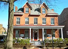 At the age of 10, Barber wrote his first operetta, The Rose Tree, to a libretto by the family's cook.[3] At the age of 12, he became an organist at a local church. At the age of 14, he entered the youth artist program at the Curtis Institute of Music in Philadelphia, where he ultimately spent ten years developing his talents as a triple prodigy in composition, voice, and piano.[1] During his initial studies at Curtis, he simultaneously attended and graduated from West Chester High School (now West Chester Henderson High School), during which time he composed his school's alma mater which is still in use today.[6] Following his graduation from high school in 1928, he entered the adult professional program at Curtis from which he graduated in 1934.[3] At Curtis he studied piano with George Frederick Boyle[3] and Isabelle Vengerova,[3] composition with Rosario Scalero,[7] conducting with Fritz Reiner,[3] and voice with Emilio de Gogorza.[1] In 1928, he met fellow Curtis schoolmate Gian Carlo Menotti, who became his partner in life as well as in their shared profession.[3] During his last year at Curtis he became a favorite of the conservatory's founder, Mary Louise Curtis Bok. It was through Mrs. Bok that Barber was introduced to his lifelong publishers, the Schirmer family.[3] After graduating from Curtis in the Spring of 1934, he pursued further studies in conducting and singing with John Braun in Vienna through the aid of a Pulitzer traveling scholarship.[3][1] He soon after was awarded the Rome Prize which enabled him to pursue further studies at the American Academy in Rome from 1935–1937.[3] He was awarded a Guggenheim Fellowship in 1946 and also studied conducting privately with George Szell.[1][3]