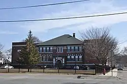 The city's oldest existing school was designed by architect Edwin Earp & Son of Lynn,[2] who later sued the town for $3000 for fees in connection with the drawing of plans for the school. The town expended $33,000 for the building committee and for architect's fees. It took about three months to complete the building that was finished on September 20, 1911. The school's one hundred pupils then occupied three rooms. The building was named for Samuel Brown, who died during the American Civil War in the Battle of Antietam.
