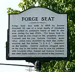 {{cite web}}: CS1 maint: archived copy as title (link) - "Forge Seat Marker - Historic Markers Across Tennessee". www.lat34north.com. Archived from the original on 2016-03-04.