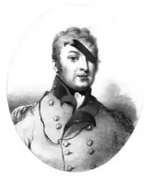 After returning to England in February 1784,[8] he transferred to the 19th Regiment of Foot in April 1786[9] and was deployed to Jamaica in 1787.[9] He was sent to Holland in September 1793[10] and took part in the relief of Nieuwpoort during the Flanders campaign.[11] He was deployed to Saint Vincent in June 1795[12] and was wounded during the Second Carib War.[13] He went on to become commanding officer of the 27th Enniskillen Regiment in January 1797.[14][15] He was severely wounded later that same year in The Battle of Callantsoog, during the Anglo-Russian invasion of Holland.[16] He took part in the Battle of Alexandria in March 1801 and then returned to England later in the year.[16]