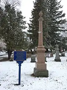 The Ontario Institution held the funeral service for him two days later on February 19, 1890, and everyone at the school wore badges to pay their respect for the memory of him. He was buried in Belleville Cemetery. The tombstone was erected in the fall of 1880 and his burial tombstone is widely known among the Deaf and hard of hearing community. Located in the Section P of the Belleville Cemetery, his tombstone has an engraving of his last name "Greene" in manual alphabet of American Sign Language.[5]