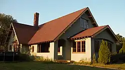 The Samuel and Nina Marcus House is a historic house at 241 E. Jefferson Street in Spring Green, Wisconsin. The house was built in 1921 for Samuel Marcus, who managed a branch of his father's department store, and his wife Nina, a Chicago native who moved to Spring Green after marrying Samuel. Architect Morton L. Pereira gave the house an American Craftsman design, a popular early twentieth century style which emphasized simplicity and naturalism. The couple had lived in Los Angeles, where the style was especially popular, before moving to Spring Green; they chose Pereira as the architect due to his family's friendship with Nina's. The one-and-a-half story house features a stucco exterior, a projecting front bay with a recessed arched window, an arched side entrance porch, and a steep gable roof with overhanging eaves and exposed rafter tails. The Marcus family lived in the house until 1927, when financial difficulties caused them to sell the home and move into a converted apartment in the department store. The house is the only full example of the American Craftsman style in Spring Green.[2]