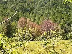 Since it is located on the mountains, the main forests are Pines and Oaks. Its elevation above sea level is the proper one for coffee plantations. Its mountains and hills are very high and steep. It has several water spring running down the steep hills.One curiosity is a huge rock monolith on the way to the departmental capital, which proves the volcanic origins of the rocks in this municipality and the rest of the department.