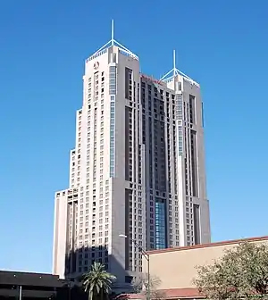 Marriott Rivercenter is a hotel located in San Antonio, Texas, USA. At a tip height of 546 feet (166 meters), the 38-floor hotel is the tallest building and second tallest structure in the city (the Tower of the Americas is taller). It is also the tallest hotel in Texas outside of Dallas. Its roof height, however, is 441 feet (134 meters), 3 feet shorter than the Weston Centre.